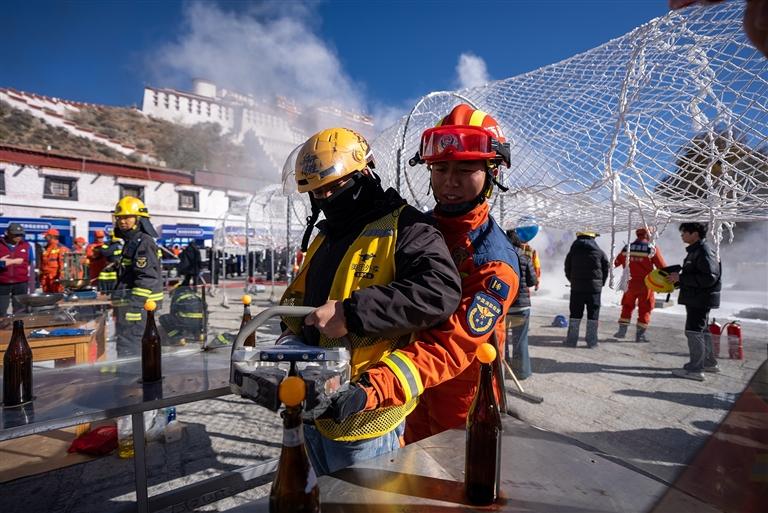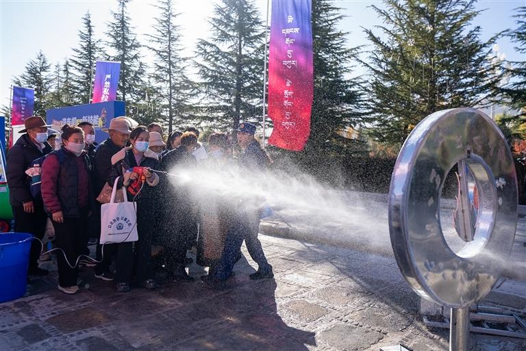 在演练体验区,消防救援人员邀请现场市民观摩油锅起火的科学处置方法,体验消防水枪精准打靶,学习制作多种实用的消防绳结,通过模拟场景和专业的指导,让公众“零距离”掌握必备的消防安全技能,全面提升自救互救能力;在装备器材演示区,消防救援人员现场展示生命探测仪、红外热成像仪、灭火侦查机器人等消防装备并进行讲解示范,让现场市民通过亲身体验专业装备,了解火场危害性,直观了解消防救援工具的作用。“今天的活动很有意义,在体验的过程中就学到了很多消防安全知识,今后会把学到的知识运用到日常生活当中,注意用电用火安全。”拉萨市民洛堆说。