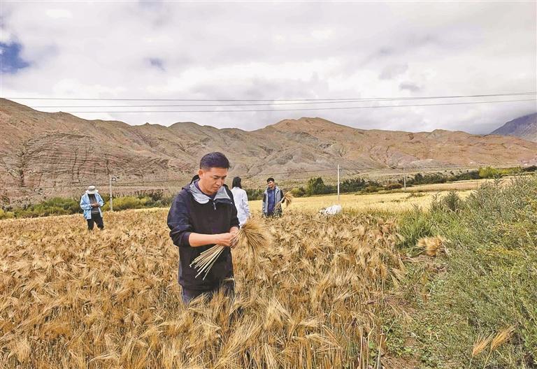 图为自治区农牧科学院农业研究所科技人员在错那市觉拉乡进行优异品种选穗工作。 (图片由农业研究所提供)