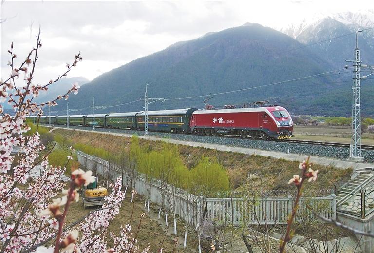 图为拉林铁路上运行的K6834次列车(资料图片)。本报记者 旦增兰泽 本报通讯员 拉巴次仁 摄