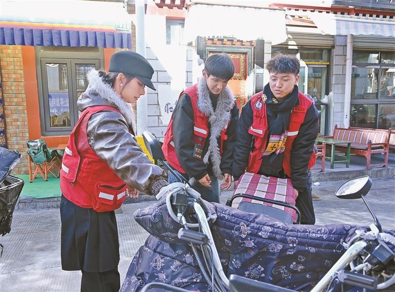 图为冬日里,拉萨市城关区雪社区网格员正排查安全隐患,疏通社区道路,保障群众便捷出行。本报记者 王敏 摄