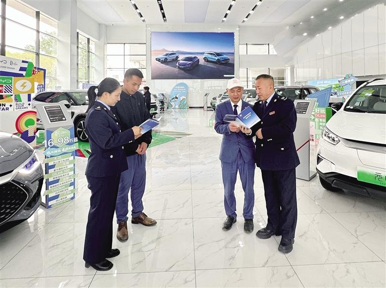 市民在购买新能源汽车时,税务工作人员为其讲解办税政策(资料图)。图由自治区税务局提供
