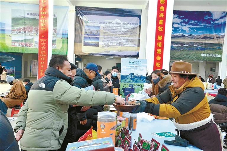 这次展销会不仅线下热闹,线上也同样火爆。为了让各类产品走得更远,展销会特意搭建起“线上直播带货+线下现场选购”的双线销售通道,一边是线下市民现场挑、现场买,新鲜看得见、品质摸得着;一边是主播对着镜头,向全国网友推介那曲好物,让远在千里之外的消费者也能品尝到那曲味道。同时,展销会还邀请电商平台、采购商代表和参展商精准对接,帮本土农畜产品打通销路,再也不愁“酒香巷子深”;积极引导机关、企事业单位及社会各界参与消费帮扶,以“以购代扶”“以买促销”的方式助力本土产业发展,在全市形成“人人支持本土产业、人人参与乡村振兴”的浓厚氛围。