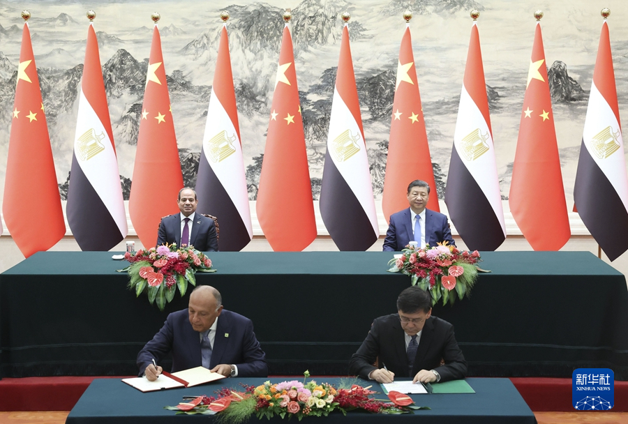 双方发表《中华人民共和国和阿拉伯埃及共和国关于深化全面战略伙伴关系的联合声明》。