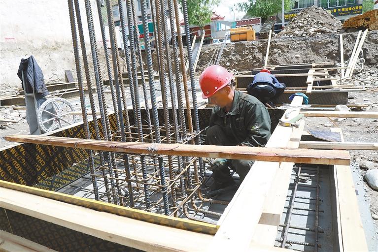 图为施工人员在紧张有序地施工。本报记者 格桑伦珠 摄