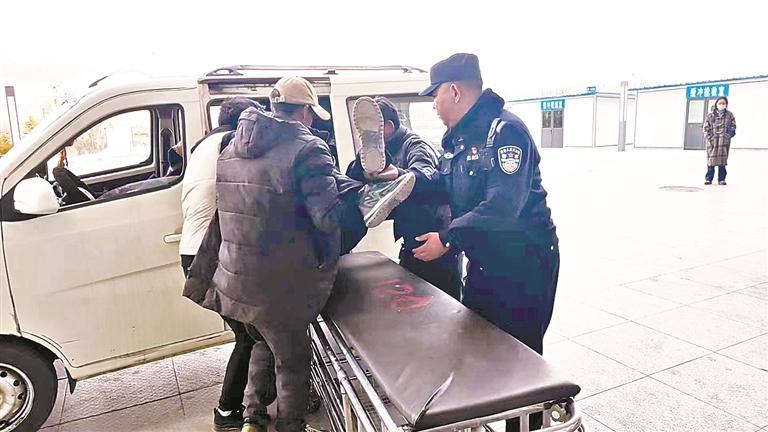 曲夏公安检查站民警在救助伤员。