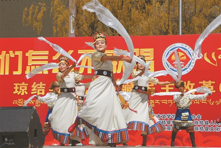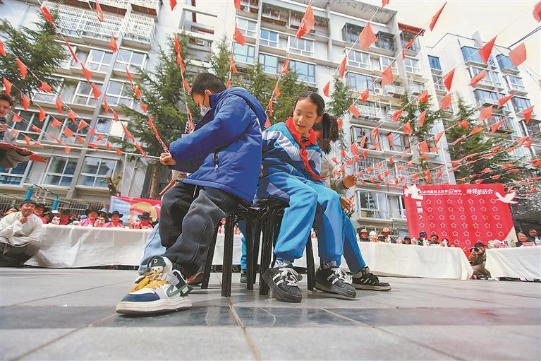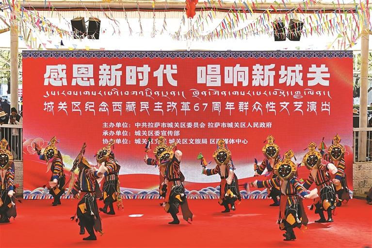 为纪念西藏民主改革67周年,城关区尼卓林社区党总支在蜀园小区广场举办“铭记历史·感恩新时代”主题党日暨“睦邻茶话会”活动