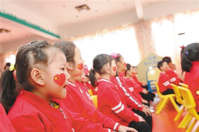 拉萨市大地幼儿园的孩子们在歌唱祖国妈妈的生日。