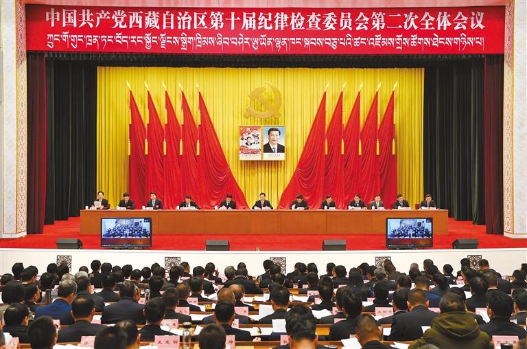 自治区纪委十届二次全会26日上午在拉萨开幕。王卫东代表自治区纪委常委会作题为《运用党的百年奋斗历史经验推动纪检监察工作高质量发展 为建设社会主义现代化新西藏提供坚强保证》的工作报告。