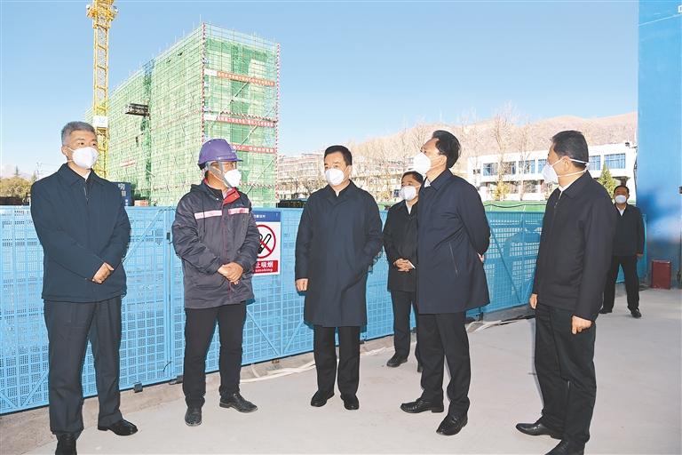 11月10日上午,自治区党委书记王君正在拉萨市调研疫情防控和复工复产工作。这是王君正在区直单位援藏干部周转房建设项目点察看项目复工复产情况。