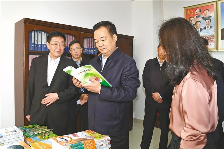 七月五日,自治区党委书记王君正在自治区教育系统调研主题教育开展和全区教育工作情况。这是王君正在自治区教育厅教材工作处了解具体工作开展情况。