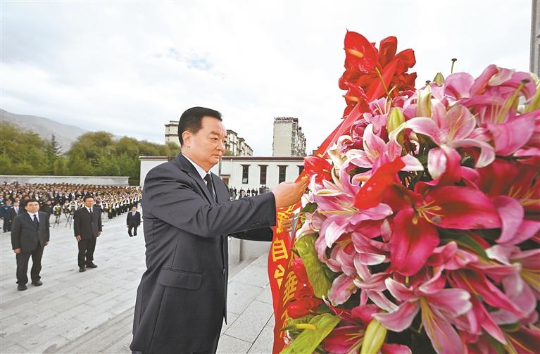 本报拉萨9月30日讯(记者 张尚华 张黎黎)英名垂青史,鲜花祭忠魂。9月30日上午,自治区举行烈士纪念日向烈士敬献花篮仪式。自治区党政军领导同全区各族各界干部群众代表一起在拉萨烈士陵园向烈士敬献花篮,深切缅怀革命先烈,传承红色基因,赓续红色血脉,凝聚建设社会主义现代化新西藏的强大力量。