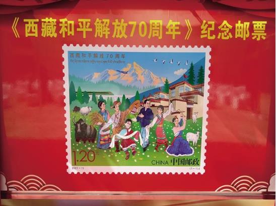 8月16日,《西藏和平解放70周年》纪念邮票发布仪式在拉萨举行。中国邮政将于8月19日发行《西藏和平解放70周年》纪念邮票1套1枚。全套邮票面值1.20元,邮票计划发行数量700万套。届时,还将同步发行《西藏和平解放70周年》首日封、《大美西藏》邮折、《盛世中国 幸福西藏》西藏和平解放70周年纪念邮册、《六合集祥》藏文化主题纪念邮册、《西藏和平解放70周年》纪念金套装。