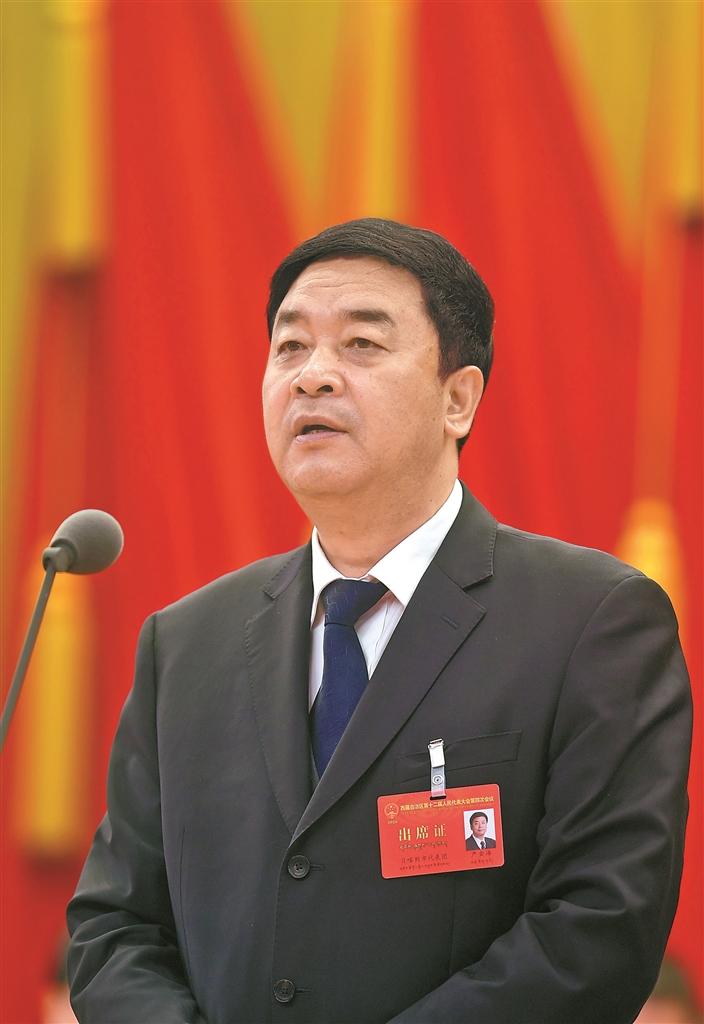 自治区十二届人大四次会议开幕王君正刘江等在主席台就座严金海主持大会嘎玛泽登作政府工作报告