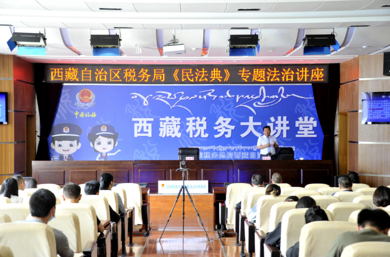 西藏自治区税务局举办“西藏税务大讲堂”,对《中华人民共和国民法典》进行专题学习,并邀请自治区司法厅、自治区普法办和自治区律师协会组织的优秀律师宣讲团成员达瓦扎西律师对《民法典》进行详细讲解。