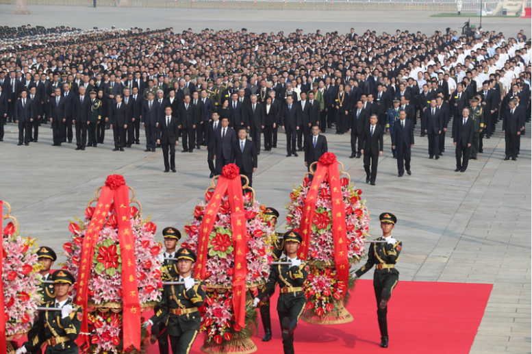 9月30日上午,习近平、李克强、栗战书、汪洋、王沪宁、赵乐际、韩正、王岐山等党和国家领导人来到北京天安门广场,出席烈士纪念日向人民英雄敬献花篮仪式。