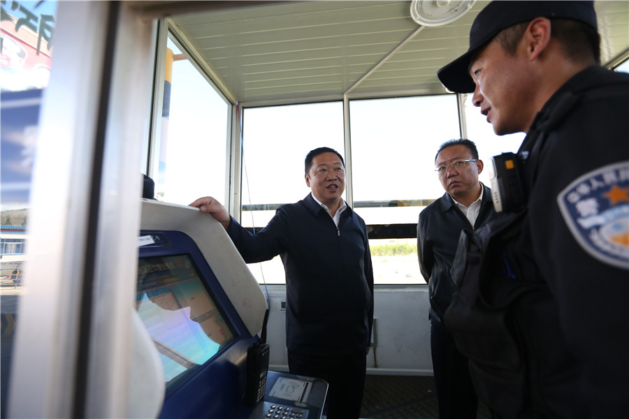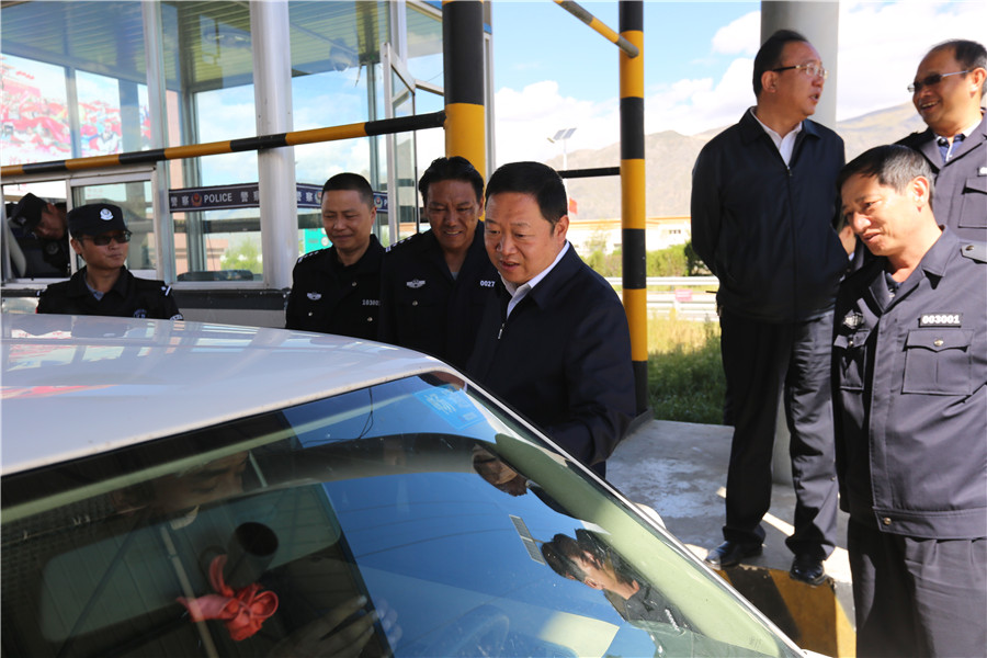 2017年9月22日上午,西藏自治区副主席、西藏区党委政法委副书记、公安厅党委书记、厅长刘江同志深入拉萨市柳梧一级公安检查站检查督导十九大维稳安保工作。公安厅党委委员、副厅长李杰祥同志,拉萨市副市长、公安局局长赵涛同志及公安厅办公室、治安总队、科信总队负责同志陪同检查。