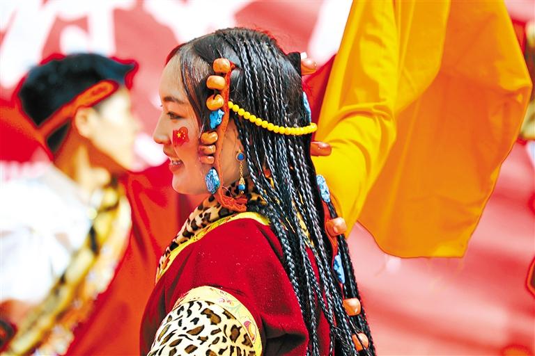 近日,拉萨市堆龙德庆区德庆镇举行“中华民族一家亲 同心共建新德庆”纪念西藏民主改革65周年文艺汇演活动。活动在藏戏《扎西雪巴》中拉开帷幕,台上的演员激情表演、台下的观众跟随旋律一同吟唱,歌曲、舞蹈、模特走秀等精彩节目轮番上演,为大家带来了一场精彩纷呈的视听盛宴,表达了农牧民群众对党、对祖国的深深热爱和美好祝福。