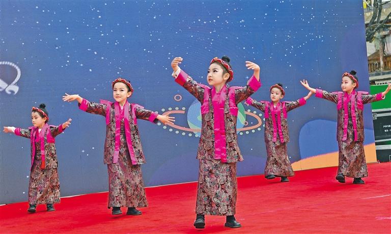 图为:3月26日,拉萨市城关区吉崩岗街道党工委组织街道各社区和辖区企事业单位开展“农奴翻身做主人 哈达献给共产党”主题文艺演出。图为城关区第八幼儿园小朋友表演舞蹈《美丽的仁增旺姆》。