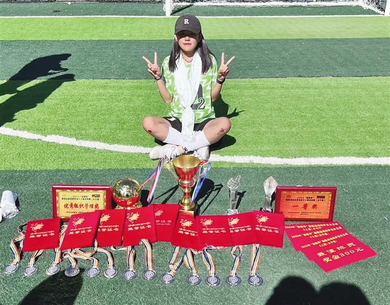 而最能证明她们训练成果的就是足球联赛。 2023年“迎新杯”酷锐运动拉萨业余足球5人制(女子组)比赛、第二届“亚克杯”女子5人制交流赛在拉萨开赛,这也是西藏少有的女足赛事。米央以拉萨另类女子足球队队员身份参赛,尽管米央是队内年纪最小的成员,但她的能力丝毫不逊于任何人。米央所在的这支由高中生、大学生等组成的队伍,经过10场比赛,拼尽全力最终夺得冠军。“每当足球在我脚下滚动飞跃,每当我奔跑在绿茵场上,那种肆意和快乐让我坚定我的选择,我的梦想是踢进中国国家女子足球队。”米央说。虽然她与梦想还有距离,但内心那股熊熊燃烧的信念力量,成为她刻苦训练的“定心丸”。