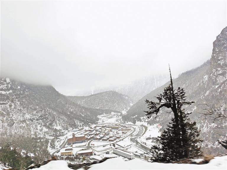 傍晚,翻过海拔5000多米的恰拉山口,经过白雪覆盖的草原,旅游团一头扎进云雾笼罩着的日拉雪山深处。浓重的雾气中,雪花飞舞,松林密布,天地之间只剩黑白两种颜色。