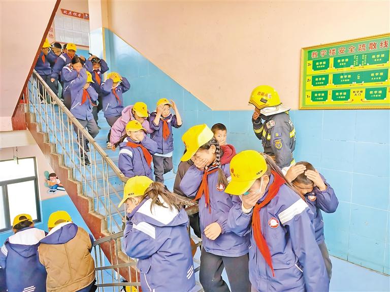 拉萨市消防救援支队指战员组织学生开展应急疏散演练。本报通讯员 肖暄 摄