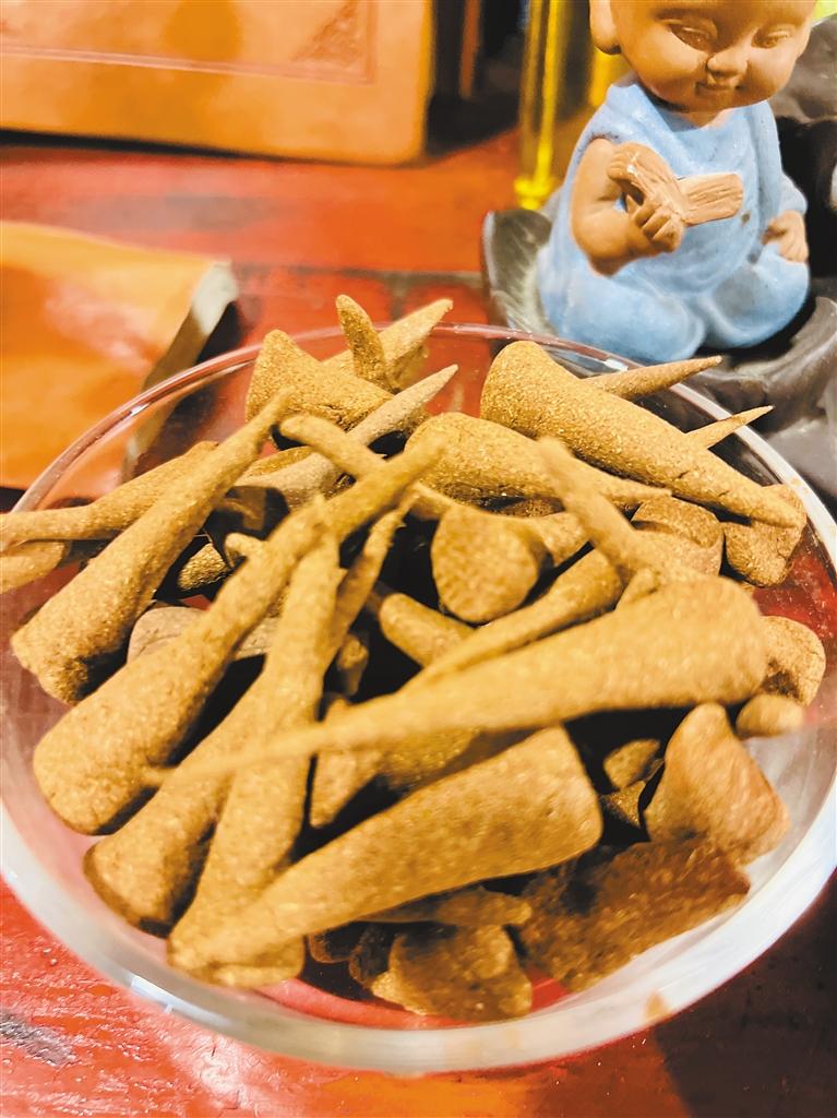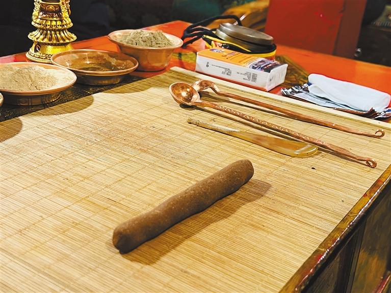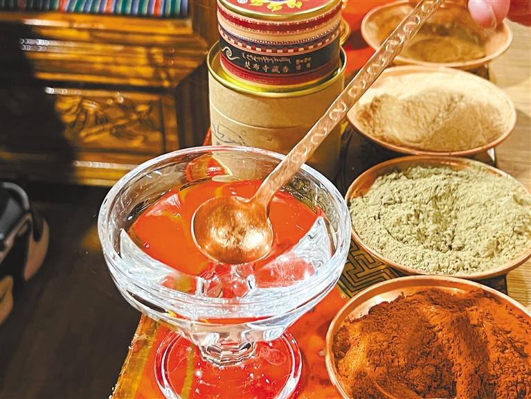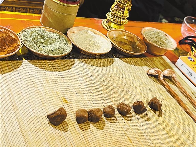“我们准备了7种常用的原料,其中,有一味香料是由30种珍贵原材料混合制成,剩下的还有甘丹香草、红檀香、榆树粉、柏树粉、丁香等,紫檀香可以缓解精神紧张、助眠,甘丹香草可以杀菌、消毒……”平措向游客讲解着。