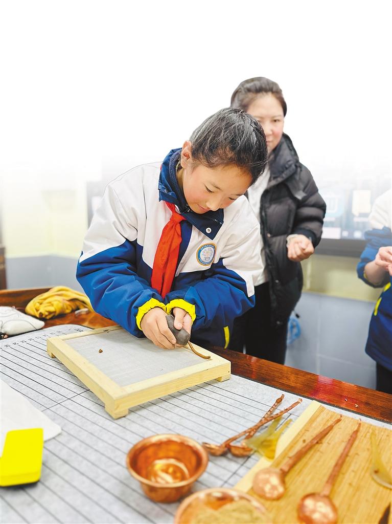 图为拉萨楚布文化传播有限公司创始人拉巴片多(左)教小学生制作藏香。
