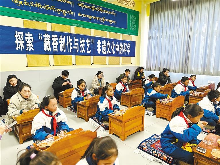 图为“藏香制作与技艺”活动走进堆龙德庆区第二小学。