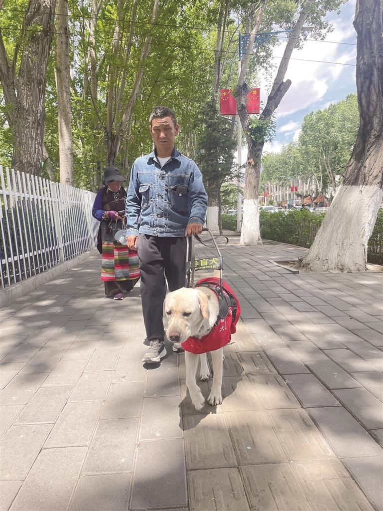 前年,在残联支持下,达琼独自赴大连学习导盲犬培训。经过刻苦学习,他顺利结业并带回了导盲犬福桔。如今,福桔成了达琼的“眼睛”,能带他到大部分想去的地方。“有了福桔,出行方便多了。我希望以后能有更多盲人用上导盲犬。”达琼说。从不停止探索与尝试,这或许就是达琼能够不断创造奇迹的原因。