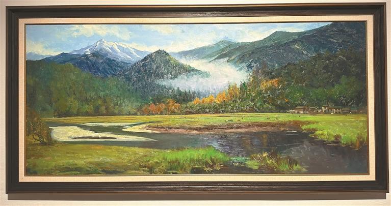图为格桑次仁油画作品《绿水青山》(局部)。