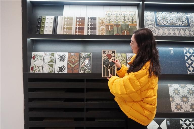 在瓷砖行业,林珊珊早已有了自己的“生意经”。她的店汇聚了30余种国内、进口优质品牌的瓷砖,不做流水线产品,只挑质量过关、花色新颖、审美契合年轻人的款式。