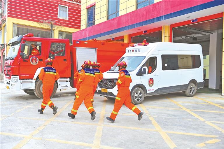 玉龙铜业矿山救援中队在演练。本报记者 温凯 摄