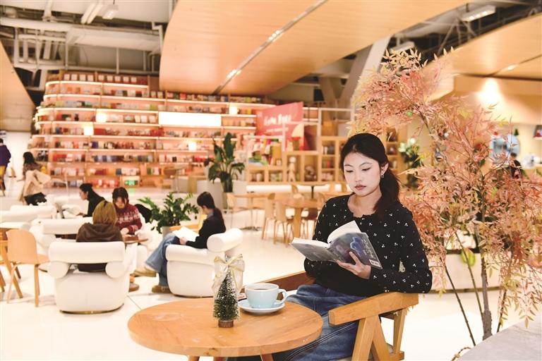 2025年12月25日,在威海市新华书店“至海空间”,市民在看书。新华社记者 郭绪雷 摄