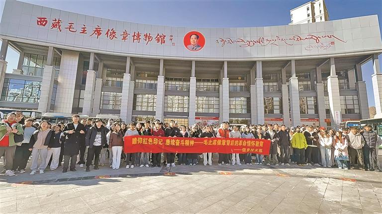 拉萨师范学院学生在西藏毛主席像章博物馆门口合影。本报记者 刘斯宇 摄