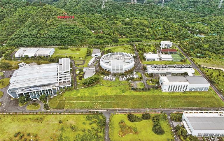 在粤港澳大湾区多地,一系列在建和已启用的大科学装置集群效应初现,助力大湾区加速迈向国际科技创新中心。图为在广东东莞拍摄的中国散裂中子源(2024年7月8日摄,无人机照片)。新华社记者 毛思倩 摄