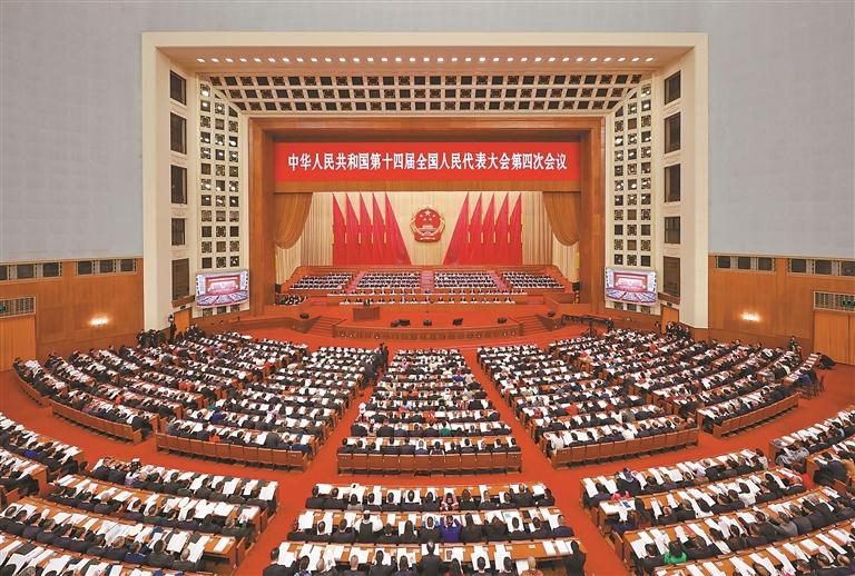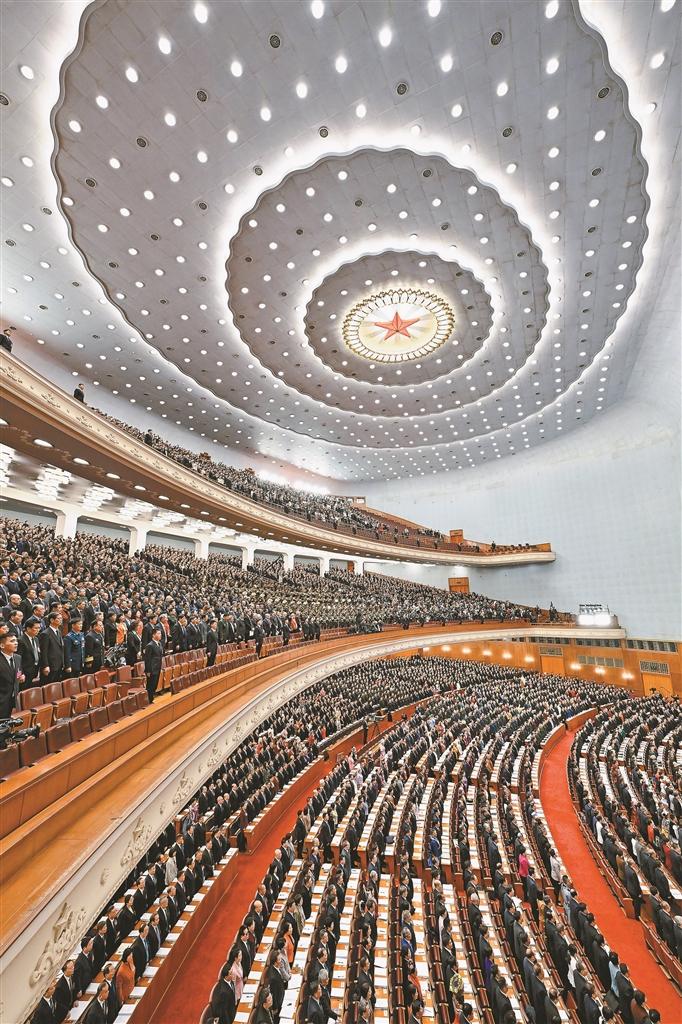 图为3月5日上午,第十四届全国人民代表大会第四次会议在人民大会堂开幕。新华社记者 殷博古 摄