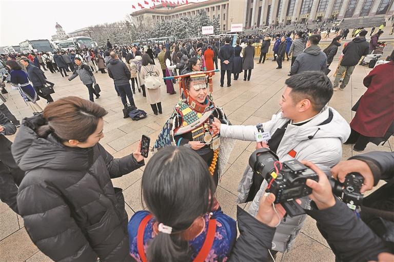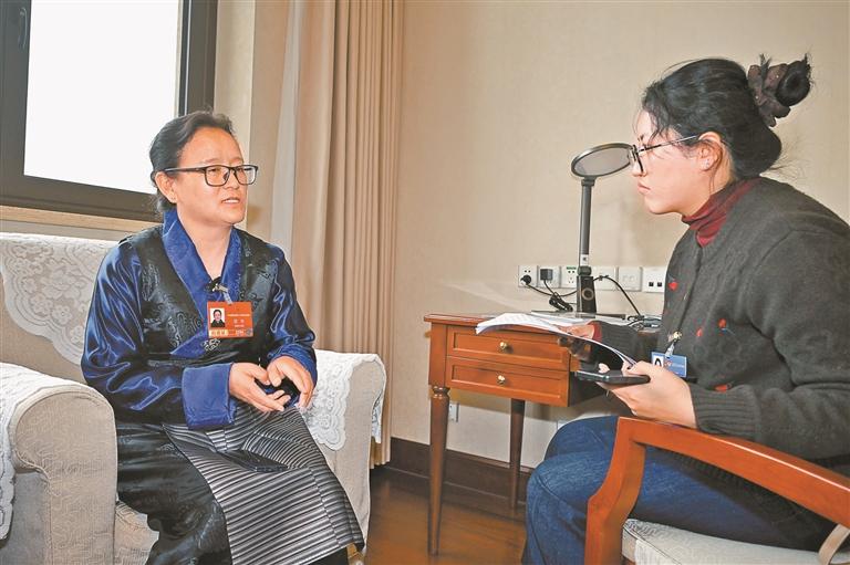 图为尼珍代表(左)接受本报记者采访。本报记者 李洲 摄