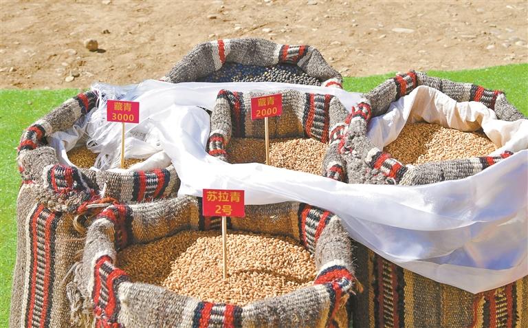 图为墨竹工卡县唐加乡春耕春播仪式上展示的各类青稞种子。本报记者 索朗旺久 摄