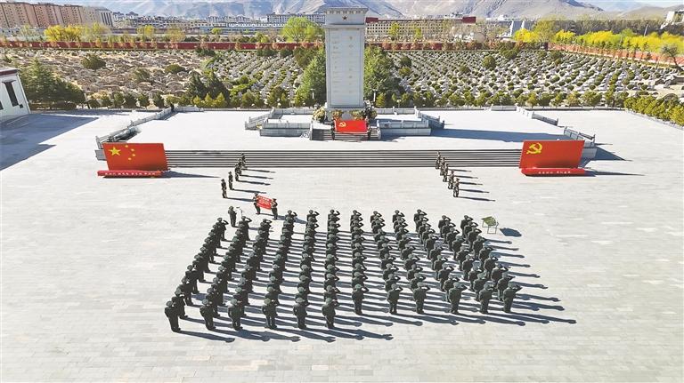 西藏军区某部在拉萨烈士陵园开展清明祭扫活动。本报记者 王香香 本报通讯员 吴成淼 摄