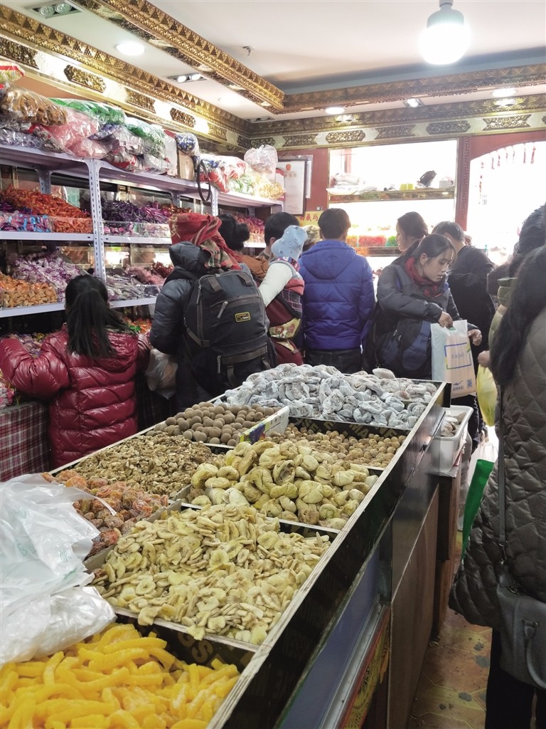 走进八廓商城,记者看到各种琳琅满目的年货被堆满在货架上,商城的三楼是集中售卖干果、糖果等零食的地方,在摊位前许多市民正在挑选五颜六色的糖果和干果。市民卓玛说:“这里有各种口味的糖果和不同种类的干果,包装五颜六色的,买回去摆放在盘子里看着很喜庆,有过年的感觉”。