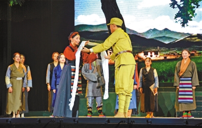 28日晚,庆祝中华人民共和国成立70周年献礼剧目——新编现实题材藏戏《次仁拉姆》在山南市雅砻剧院首演,取得良好效果。