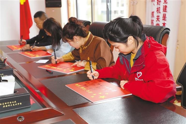一句句饱含深情的话语,一声声铿锵有力的誓言,表达着山南市直机关工委干部职工对祖国的真挚热爱、对国家未来图景的美好憧憬和深切祝福。
