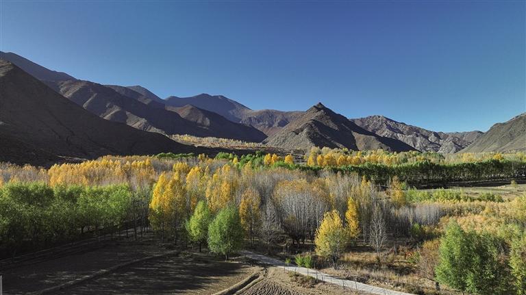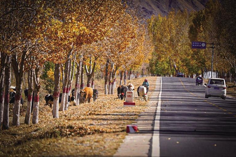 G318被称为“中国景观大道”,沿途壮丽绝美的风光令人心醉神迷。恰风和日丽的一天,记者一行驱车前往G318曲水段与达孜段。一路层林尽染,落叶飘飞,如诗如画,美不胜收。
