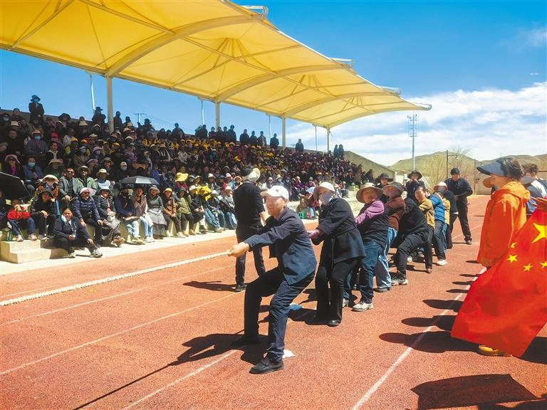 图⑤:日喀则市财政局联合日喀则融资担保公司、樟木镇开展西藏民主改革66周年系列活动拔河比赛。
