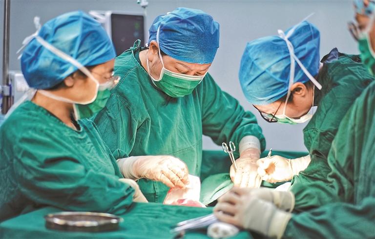 图为襄阳市第一人民医院妇产科主治医师为藏族妇女做剖腹产手术。本报记者 白玛泽旺 本报通讯员 伦珠泽仁 曲杰 摄