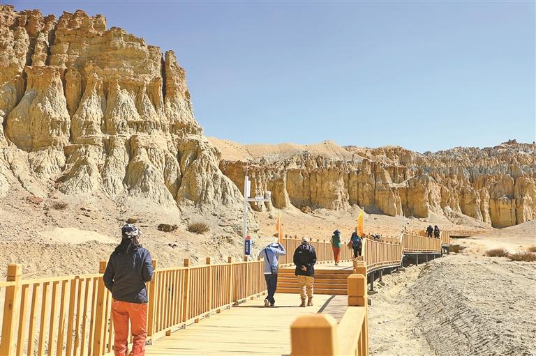 游客们在香孜五彩土林景区内游览。本报记者 永青 摄