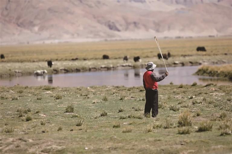 依山傍水的扎西岗湿地,在雪山、河流、草场、牛羊的点缀下,如同人间仙境。湿地上轻轻柔柔的河流像丝带一样蜿蜒在草原上,让坚硬的阿里高原变得柔情似水 。