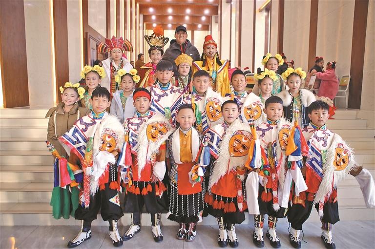 图为中普琼和自治区群艺馆(区非遗保护中心)少儿藏戏班演出学生合影。