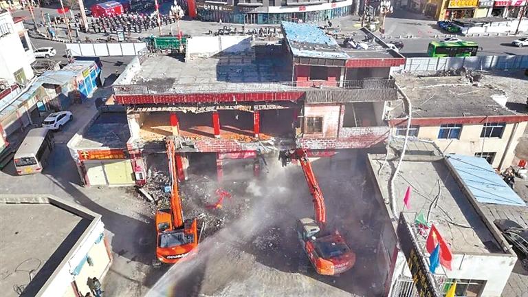 图为山南市月光市场拆除现场。 本报记者 丹增平措 摄