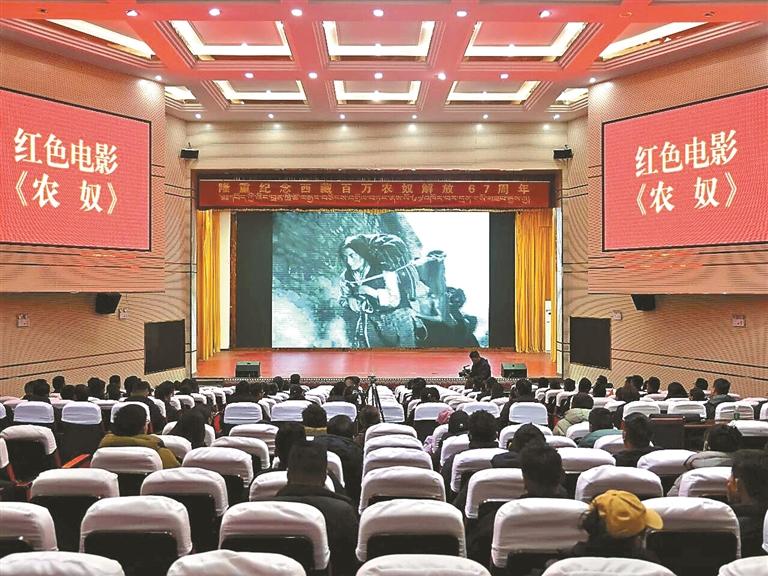 图⑧:浪卡子县组织播放红色电影《农奴》,激励广大干部群众听党话感党恩跟党走。